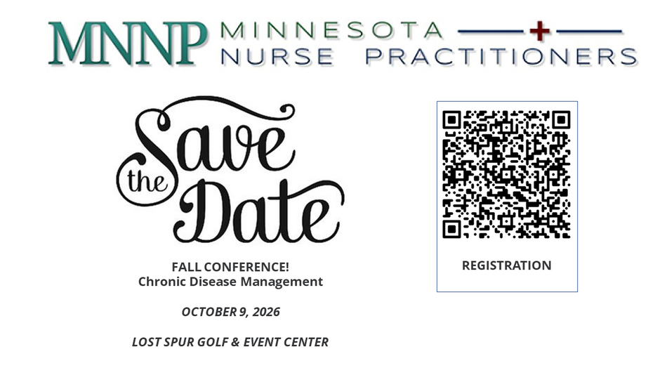 MNNPs Fall Conference 2026 Lost Spur Golf and Event Center 2750 Sibley Memorial HighwayEagan, MN 55121 Friday, October 9, 2026 at 8:00am CT - 4:00pm CT Posted by Minnesota Nurse Practitioners Info Exhibit Info Credits Offered This event offers 0.0 CEU credits to attendees. Accreditation Info: TBD. Additional Information Exhibit Attachments LOI (680 KB) MNNP W9 - Aug 6 2024 - 2026 (680 KB) Premium Partners - Premium Booth Location- Prime Logo Placement on Website, Branded Swag item- Full Attendee Contact List $1,000.00 Select Partner - Prominent Booth Location- Program/Website Logo Listing- 2 Staff Badges $350.00 Select Non-Profit -Logo Inclusion on website-Digital Listing $350.00 Select Check availability and register Continue