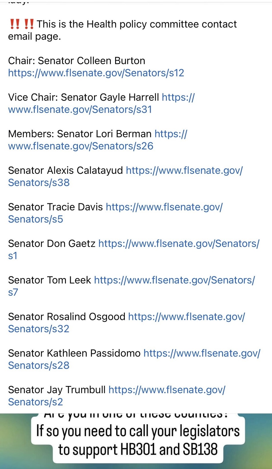 Please take a moment to contact Senator Colleen Burton and members of the Senate Health Policy Committee and urge them to hear and move SB138 forward.